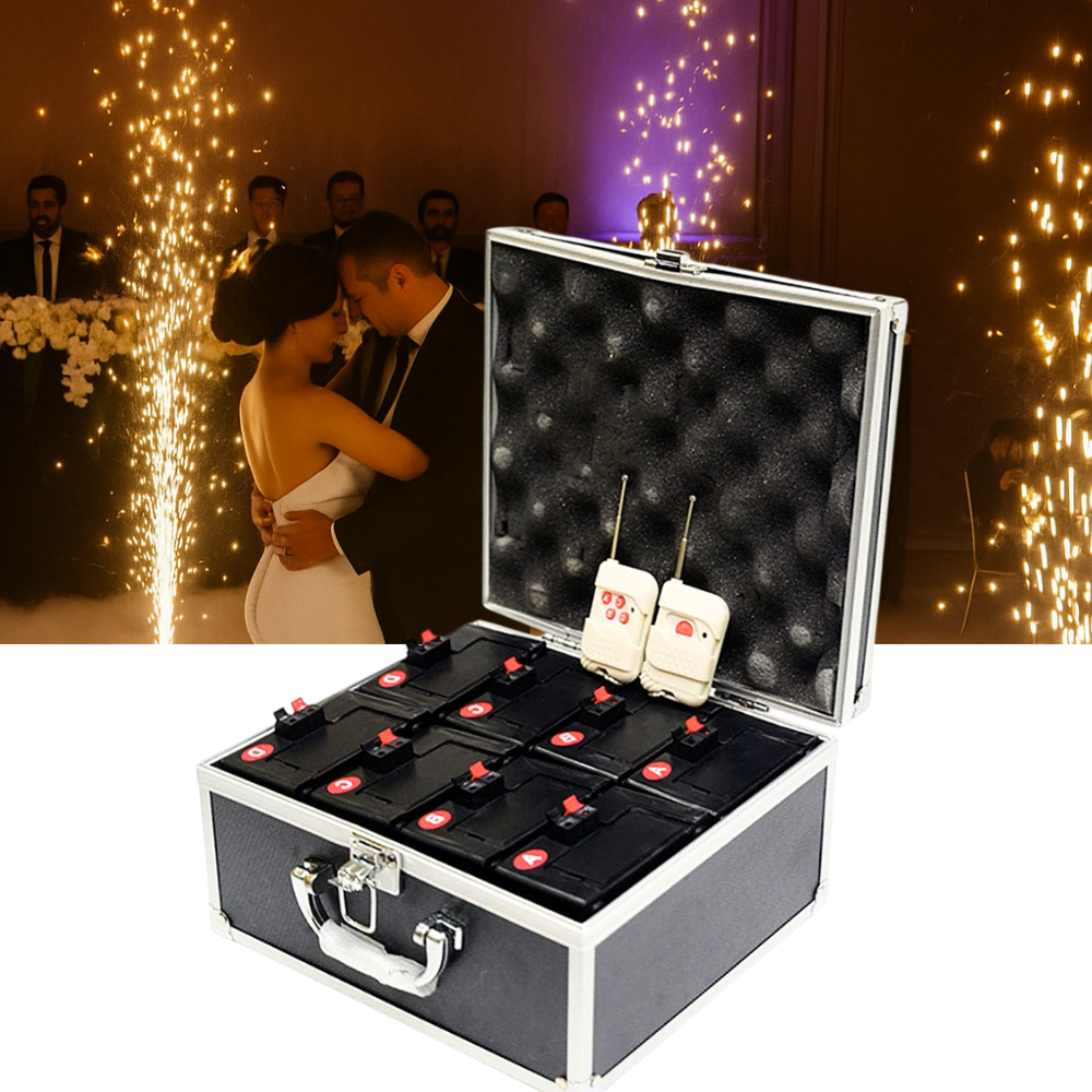 Create breathtaking, dreamlike scenes at your next event with the ACS Cold Spark Firing Kit. This all-in-one system is the easiest way to produce a professional, synchronized cold spark display for weddings, parties, concerts, and celebrations. The kit includes 10 battery-powered receivers and 2 long-range remotes, all housed in a durable protective case. Simply place the receivers, insert your cold spark fountains, and press a button to instantly create a joyful and magical atmosphere.