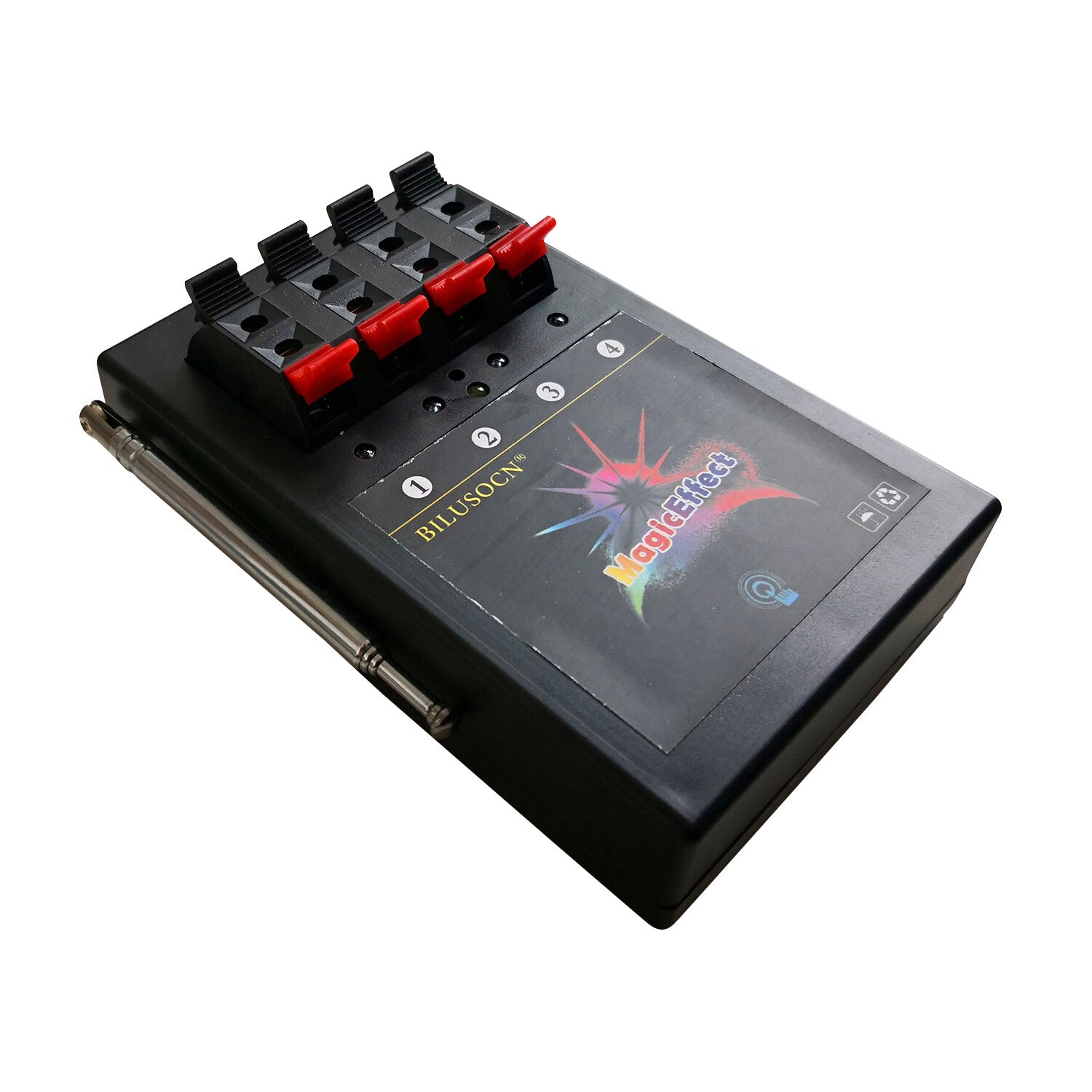 - Connect the electric igniters from your effects to the desired cues on the receiver boxes. The test light will turn green to confirm a good connection.