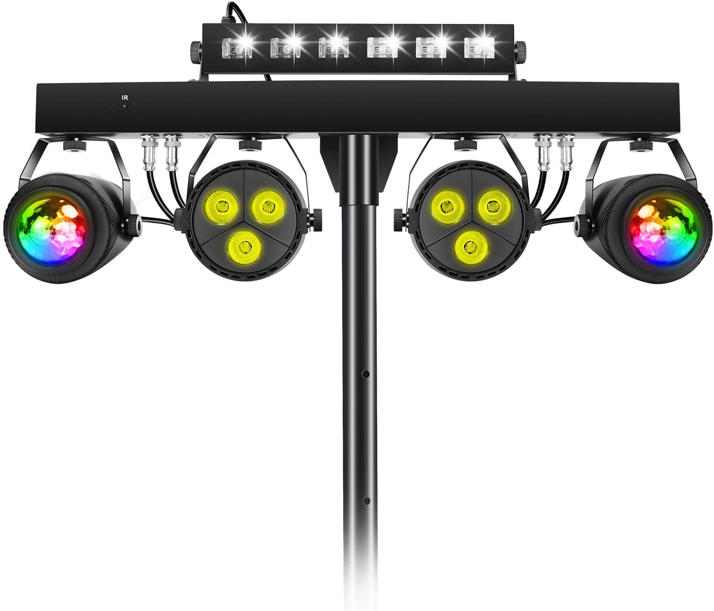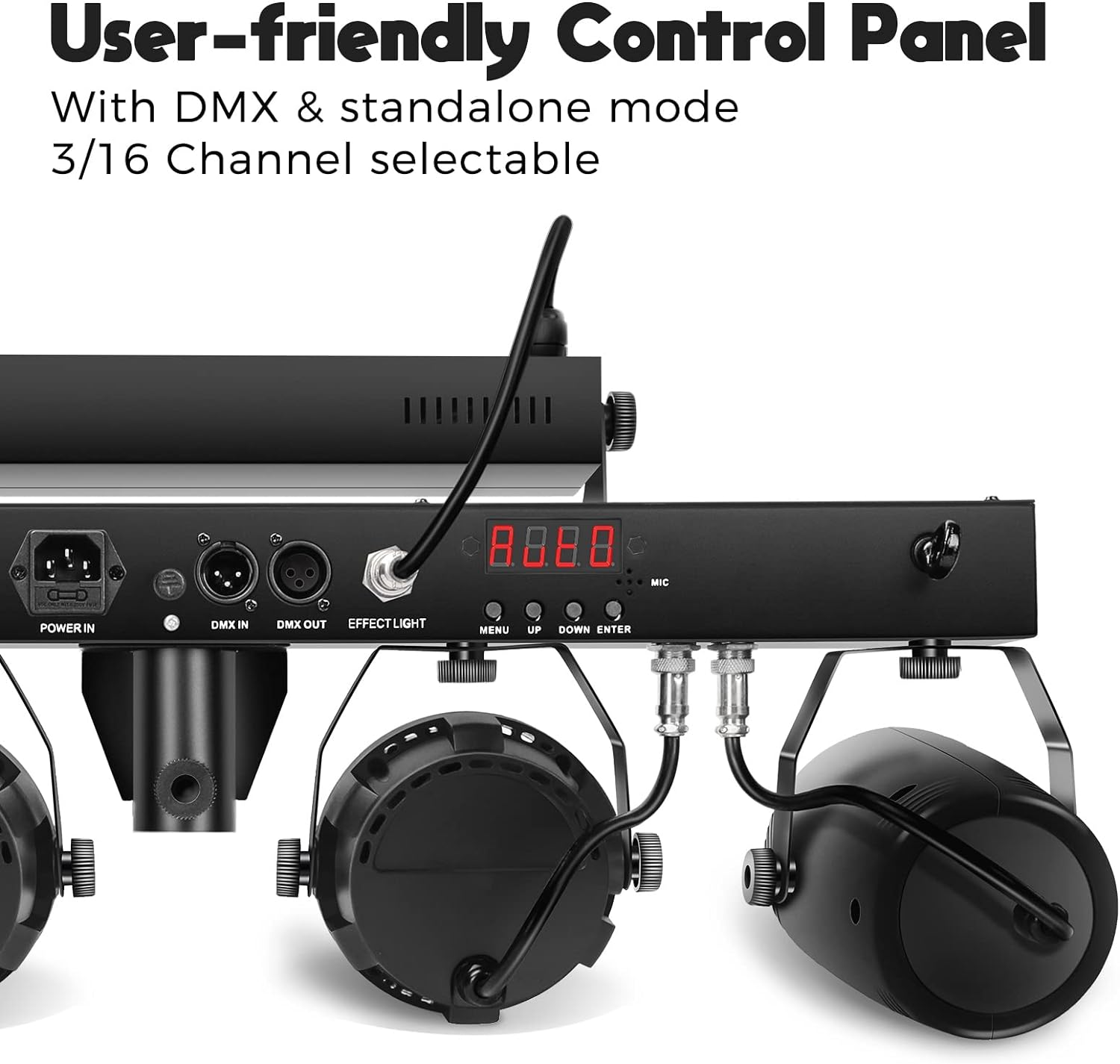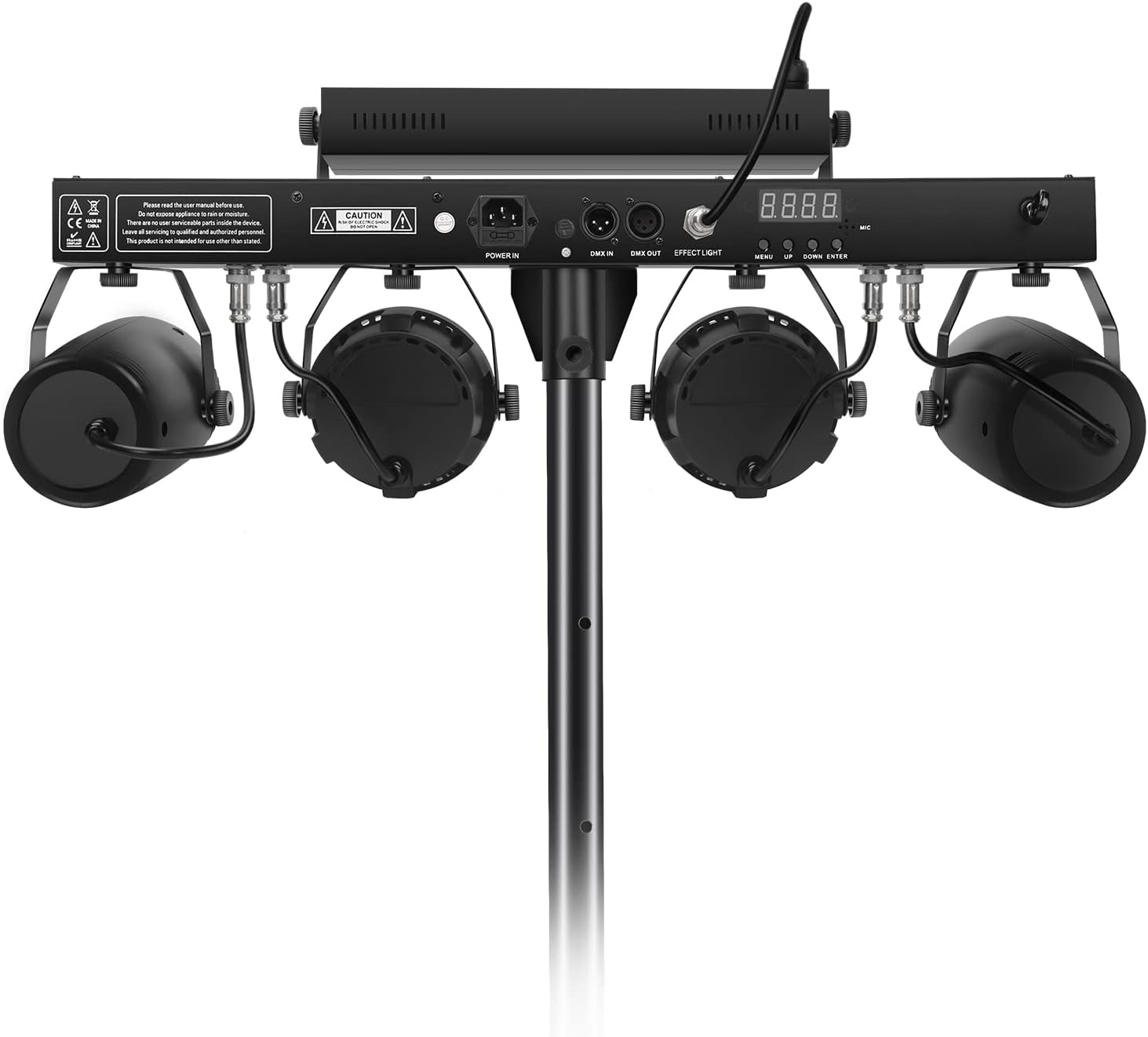 - ✅ Wide & Dynamic Coverage: 4 individually adjustable heads and a powerful light bar cover any room or stage with vibrant effects.