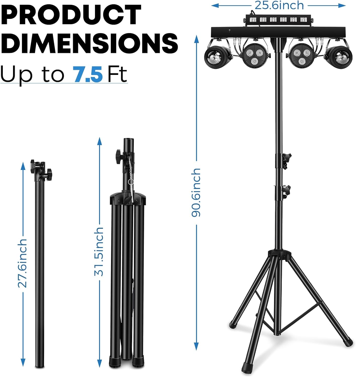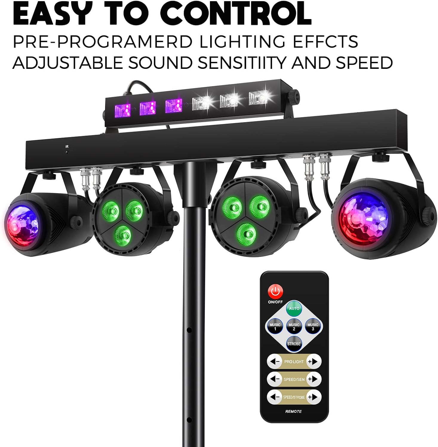 - ✅ Complete All-in-One System: Includes 2 PARs, 2 Jelly Moons, UV/Strobe bar, stand, remote, and carry bag.